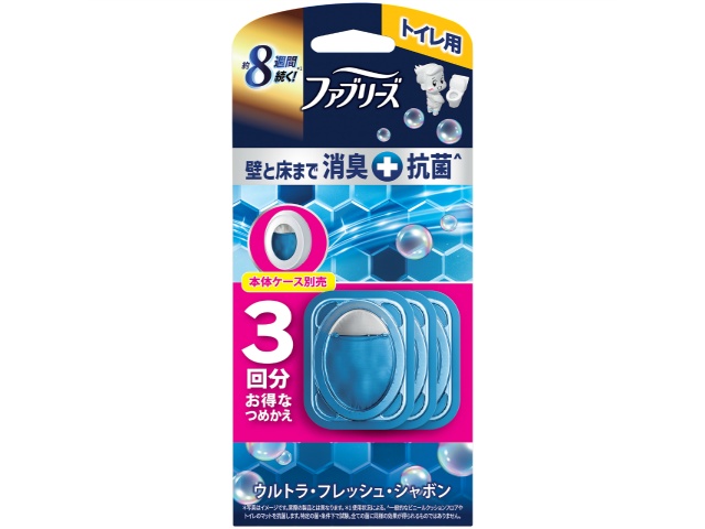P&G ファブリーズトイレ用消臭剤プレミアムシリーズ+抗菌ウルトラフレッシュシャボンつめかえ3個パックx1
