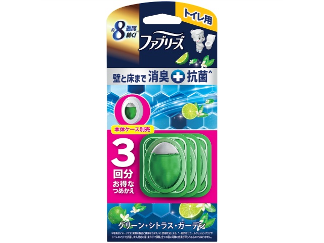 P&G ファブリーズトイレ用消臭剤プレミアムシリーズ+抗菌グリーンシトラスガーデンつめかえ3個パックx1