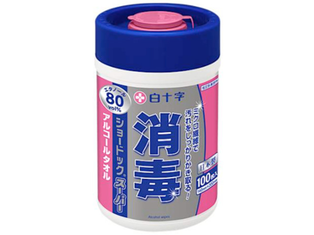 エタノール76.9-81.4vol%の消毒用のアルコールタオル。ミクロ繊維ですっきりふき取り、手指やテーブル・キッチンまわりの消毒、感染対策にもオススメです。ボトルタイプ。