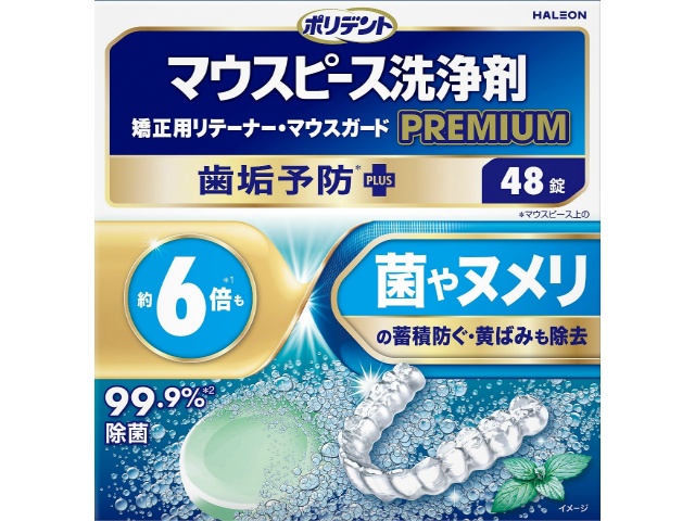 Haleonジャパン ポリデント マウスピース(ガード)・矯正用リテーナー用洗浄剤 プレミアム 歯垢予防PLUS 48錠x1
