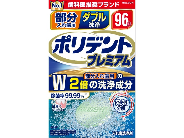 Haleonジャパン 部分入れ歯用 ダブル洗浄 ポリデント プレミアム 96錠x1