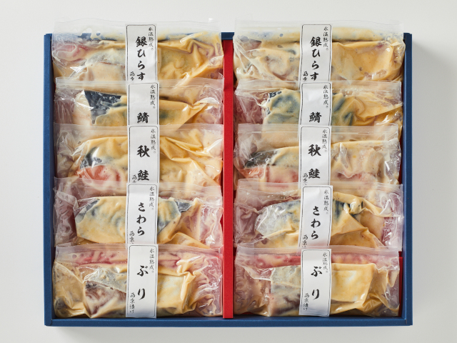 0℃以下、氷結点までの温度帯で加工・熟成する山陰・鳥取発祥の技術『氷温熟成法』によって魚の鮮度を損なう事無く旨みを引き出しました。バラエティ豊かな5種類の魚をまろやかな甘さの味噌床にじっくり漬け込んだ一品です。真空パックの個別包装で保存性も良く、焼くだけで手軽にお召上がり頂けます。柔らかな身から溢れ出す魚の旨みと、身の隅々まで染み渡った上品な味噌の味の重なりを是非ご賞味下さい。