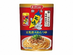 みそ・ねりごまに、チキンの旨みと豆乳のまろやかなコクを加えた豆乳担々めんつゆです。八幡屋礒五郎「七味唐からし」の香りと辛味を加え、風味豊かに仕上げました。お好みの麺でお召し上がりください。
