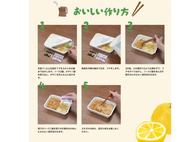 発売当時から変わらない味のペヤングソースと「だし麺 高知県産柚子だし塩らーめん」をオマージュし、酸味を引き立てたすっぱい柚子ソースのハーフ&ハーフです。